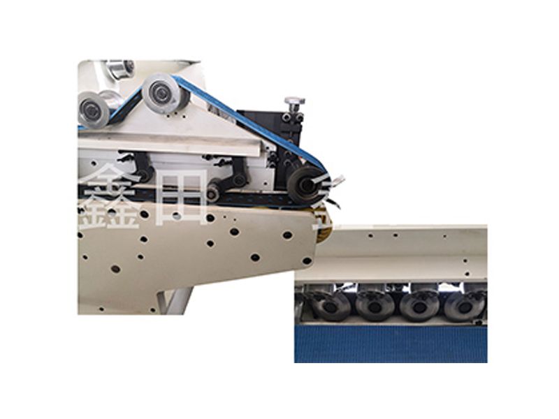 ■ 折叠部前传送带由输送带压紧纸板前进。进纸口间隙及上下输送带间隙可调。